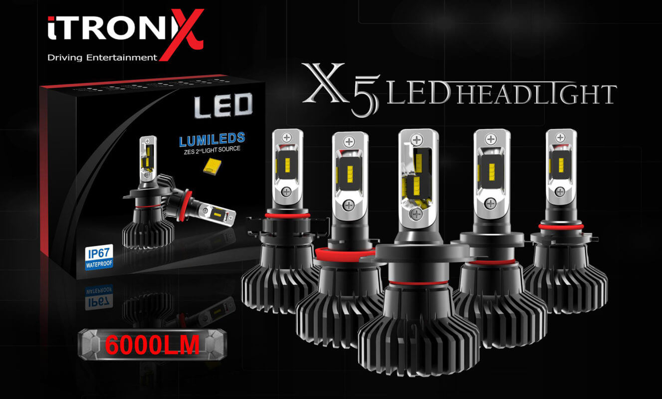 Car LED headlight with PHI ZES chips more than 6000LM with fanless design with One Year Warranty